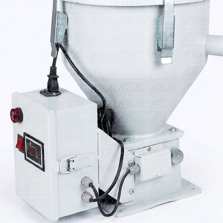 موادکش یا مکنده هوایی استاندارد دستگاه تزریق پلاستیک جهت مکش مواد به داخل قیف استفاده می گردد. این محصول بسیار سبک و کوچک به آسانی بر روی قبف دستگاه و یا قیف گازگیر نصب می گردد. مجهز به آژیر جهت اطلاع از اضافهبار و اتمام یا عدم وجود مواد در مخزن می باشد. این محصول ساخت ایران و بسیار با کیفیت می باشد.